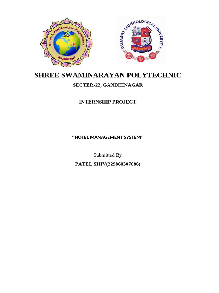 internal guide and Head of the Department Diploma computer Engineering, Shree Swaminarayan