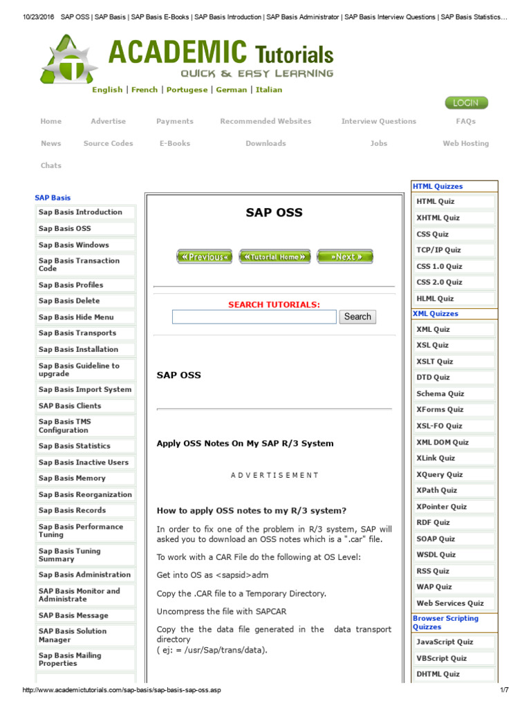 10/23/2016 SAP OSS | SAP Basis | SAP Basis EBooks | SAP Basis Introduction | SAP Basis Administrator | SAP Basis Interview Questions | SAP Basis Statistics…
