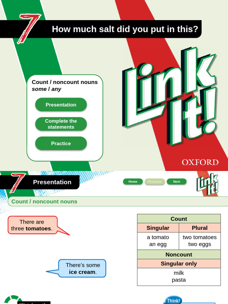 Count / noncount nouns; some / any