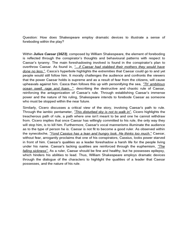 power and the nature of his ruling, Shakespeare intends to forebode Caesar as someone