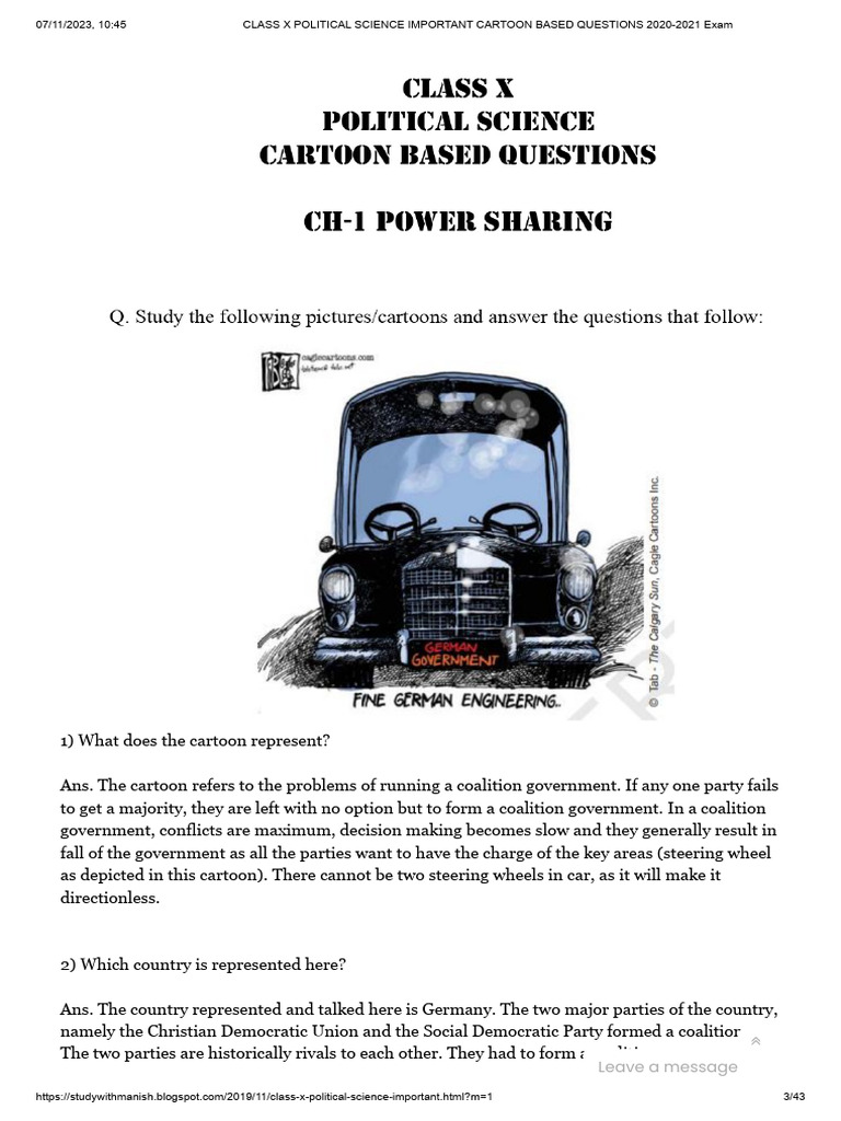 07/11/2023, 10:45 CLASS X POLITICAL SCIENCE IMPORTANT CARTOON BASED QUESTIONS 2020-2021 Exam