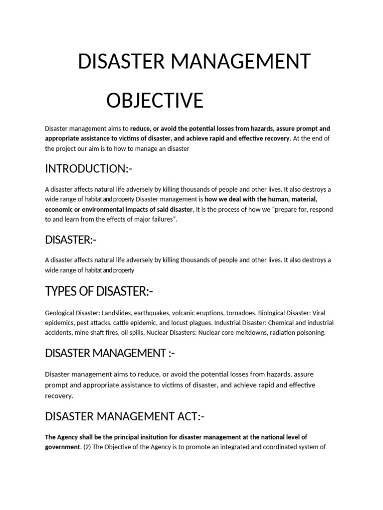 wide range of habitat and property Disaster management is how we deal with the human, material,