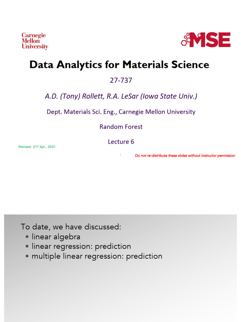 Random Forest model: examples from materials 21