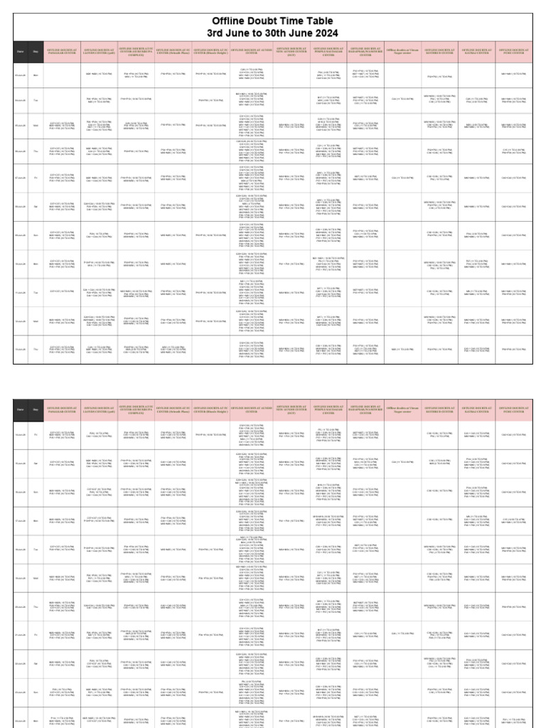 Offline Doubt Time Table