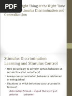 Is the stimulus different from other stimuli along more than one dimension (location, size, color, sensory modality)? Is the stimulus one that can be presented only on occasions when the desired response should occur so that confusion with the occurrence of the stimulus on other occasions is avoided? Is the stimulus such that there is a high probability of the person attending to it when it is presented? Are there any undesirable responses that might be controlled by the chosen stimulus?