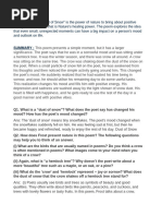Question 1: What is a “dust of snow”? What does the poet say has changed his mood? How has