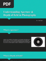 prevent the bright light from overwhelming the eye. Most camera lenses have a device analogous to the iris - a metal or plastic diaphragm which can be adjusted in size to control the amount of light entering the lens. The variable-sized hole in the diaphragm is known as the aperture, is analogous to the pupil of the eye, and is indicated numerically by an f-stop or f-number value. This value, the relative aperture of a lens, describes the amount of light that a lens lets in. The value is relative because it is equivalent to the focal length of the lens divided by the size of the lens aperture, not the physical dimensions or anything. For example, if you were to take a 50mm lens with a 6.25mm diameter aperture youd have a lens set to f/8 (since 50/6.25 = 8). Generally each increase or decrease in f-stop value either doubles or halves the aperture size. Since f-stop values are relative to the focal length, each camera lens should let basically the same amount of light through at the same f-stop value regardless of focal length. (barring complex technical factors such as light loss from large numbers of elements and so on, but we wont get into that here) The usual f-stop range on 35mm and digital SLR camera bodies is: 1.0 1.4 2 2.8 4 5.6 8 11 16 22 32 though most camera lenses are only optically capable of a subset of that overall range. The relationship between these values involves halving and doubling the amount of light. Going from f/2.8 to f/4, for example, involves a halving of the aperture size. Each number is approximately 1.4x more than its previous stop since 1.4 is the square root of 2 (to one decimal place), though since the specific numbers derive from tradition they are not always spot on. Lenses for larger camera systems such as large format cameras usually have even smaller apertures - going to f/64, for example. This series of numbers may look difficult to work with, but in fact theres a fairly simple way to recall it. Just remember that the first two values are 1.0 and 1.4 respectively. Each following value then doubles by every other value. So 1.0 becomes 2, then 4, then 8 and then 16. 1.4 becomes 2.8, then 5.6, 11 and 22. (the only minor glitch, of course, to this handy mnemonic scheme is between 5.6 and 11) Confusingly enough, when the number is small (eg: f/2.8) then the lens diaphragm is open wider (opened up) and thus more light enters the lens. If the number is large (eg: f/22) then the lens diaphragm is closed smaller (stopped down or closed down) and thus less light enters the lens. In addition to altering exposure times, the aperture setting also affects depth of field. The letter f is frequently italicized for good looks, and a slash is often placed between the letter f and the numerical f stop value to indicate that the f-stop value is a fraction of the focal length. eg: f/4 means that the aperture is a quarter of the focal length. The letter f stands for focal, factor or focal length depending on who you talk to, and the number is also often stated as a ratio. (eg: 1:2.8) Note that not all lenses have adjustable diaphragms. Many types of lenses, though not usually those sold for use with EOS cameras, have fixed apertures. Mirror lenses, for example, fall into this category since they lack (adjustable) diaphragms. Really crummy