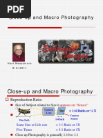 Macro USM, the expensive 180mm 3.5L Macro USM, the EF-S 60mm 2.8 macro for EF-Scompatible cameras, and the image-stabilized 100mm 2.8L IS Macro USM. There is also the unusual MP-E 65mm lens; see below. Another popular macro lens worth considering, though not from Canon, is Tamrons 90mm macro lens. 2) Buy a diopter (macro filter). These are round screw-on lenses which fit on the end of a lens in exactly the same way as a filter and which act essentially like magnifying glasses. The amount of magnification you get depends on both the strength of the diopter and the focal length of the lens to which you attach it. Diopters cost no light but can degrade the image slightly, depending on the quality of the product. Still, theyre lightweight and portable and, since they cost no light, usually permit autofocus to work. Theyre usually a good approach for beginners looking to explore macro photography. You can buy both single-element diopters which contain a single piece of glass and twoelement diopters which contain two. Two-element diopters are what you want - they cost more but provide vastly better optical quality by correcting certain optical aberrations. Diopters are available in a variety of physical sizes which match popular lens filter sizes, but can be adapted with step rings just like ordinary filters if necessary. Canon sell two two-element diopters - the 250D and the 500D. The former is intended for shorter focal length lenses, from about 30-135mm. The latter is meant for longer focal length lenses, from about 70-300mm. You can also buy a 500 diopter which, since its a single-element accessory, isnt as good. You dont have to buy Canons diopters, of course Nikon also sell highly-regarded diopters (the Nikkor 3T, 4T, 5T and 6T closeup attachments) which are actually usually less expensive than Canons. Bob Atkinss Web site has a comprehensive table of magnifications available using different diopters on different lenses. 3) Buy an extension tube. These are hollow plastic tubes which fit between the lens and the camera body, thereby increasing the distance of the lens to the camera and thus reducing the close focus distance of your lens. (ie: they let you move the lens closer to the subject while retaining focus) Attaching an extension tube means you lose infinity focus but thats obviously not an issue if youre using the tube to take closeup pictures. Tubes also reduce the amount of light reaching the film or image sensor (because moving the lens further from the film or sensor plane causes the light to spread out across a larger area). Unlike diopters, however, they do not affect image quality at all as no optics are involved. The magnification you get depends on both the length of the tube or tubes used and the focal length of your lens - Bob Atkins table lists some common combinations. Some lenses, particularly wide-angle and specialized lenses such as the 15mm 2.8 fisheye, 14mm 2.8L and MP-E 65mm 2.8, dont work properly with tubes. If you have EF-S lenses for newer EOS digital cameras then youll need the mark II Canon extension tubes (the Extension Tubes EF 12 II and EF 25 II), since the earlier versions dont mate with EF-S lenses - EF-S lenses extend deeper into the camera body than EF lenses. Canon sell a couple of extension tubes, but theyre pretty expensive. The three-tube set from Kenko is a better deal - its fairly well made and contains a 12mm, a 20mm and a 36mm tube. However, current Kenko tubes are compatible only with EF lenses - they do not physically mate to EF-S lenses.