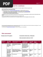 Building designed with fireresisting materials. Exits and fire exits marked and kept clear. Fire extinguishers located throughout warehouse. Access to all exits and fire extinguishers kept clear at all times. Fire detection and alarm system in place. Fire evacuation procedures displayed at each fire alarm point. Maintenance contracts for extinguishers and detection/alarm system. Fire drill and training in use of extinguishers held once a year. Smoking prohibited in the warehouse. Cleaner ensures no debris left around warehouse. All staff trained in good housekeeping during induction. Number of vehicles delivering materials is relatively low and exposure very limited this prevents build-up of fumes. Drivers not allowed to leave vehicles engines running in warehouse. Roller shutter doors and warehouse windows open