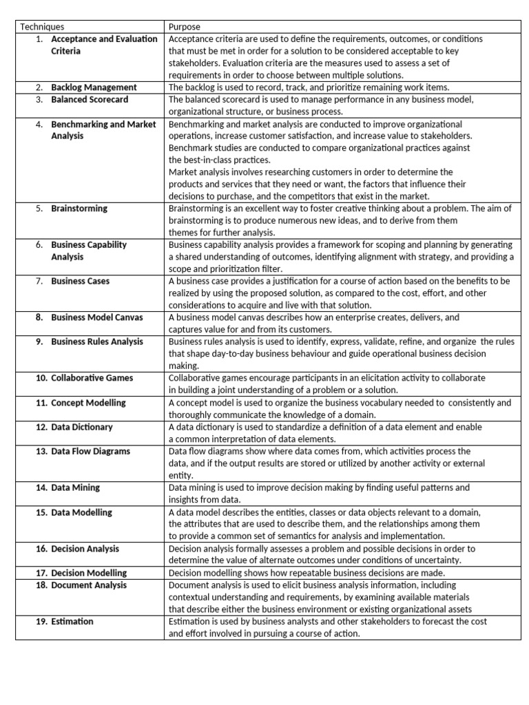 18. Document Analysis Document analysis is used to elicit business analysis information, including