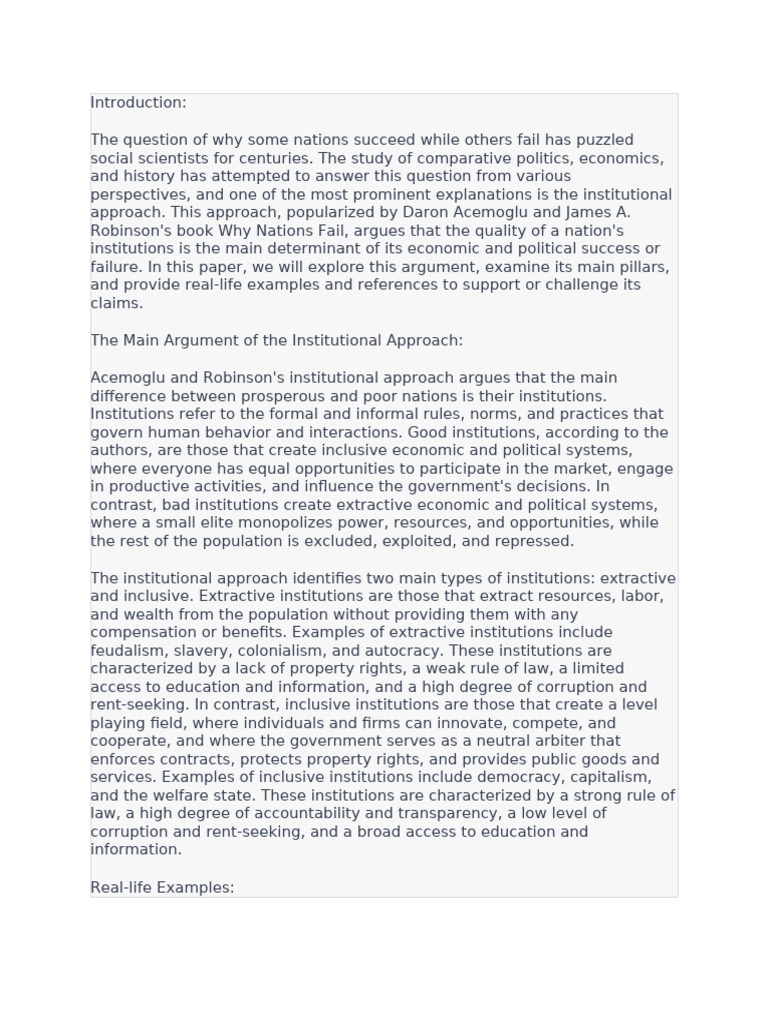 Robinson's book Why Nations Fail, argues that the quality of a nation's