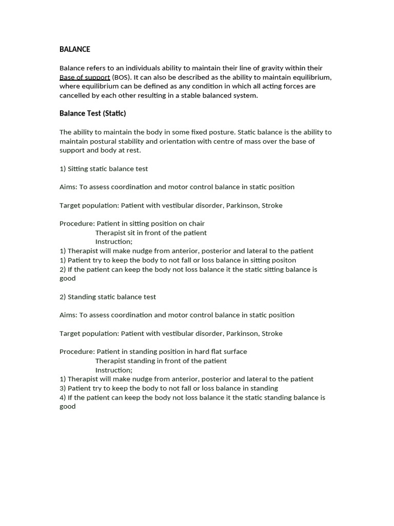 2) If the patient can keep the body not loss balance it the static sitting balance is