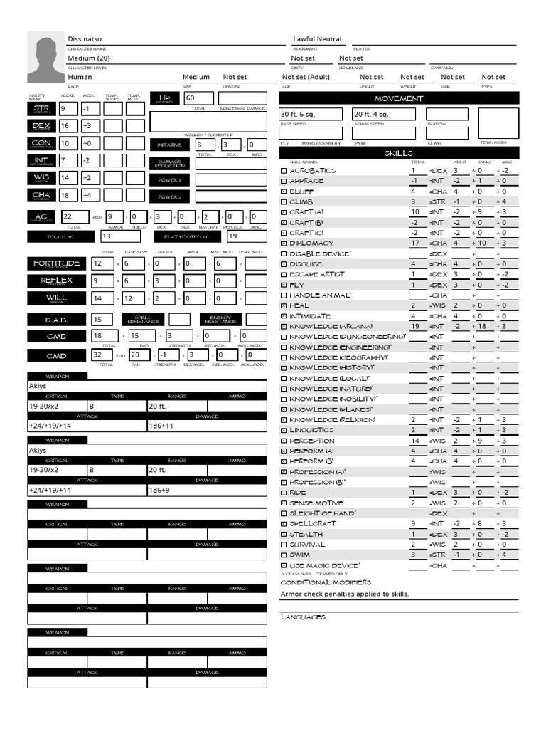 Weapon x Sense Motive 2 =WIS 2 +0 +0