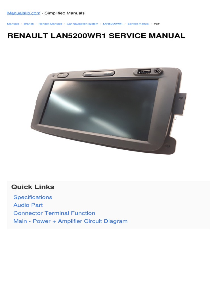 Manuals / Brands / Renault Manuals / Car Navigation system / LAN5200WR1 / Service manual / PDF