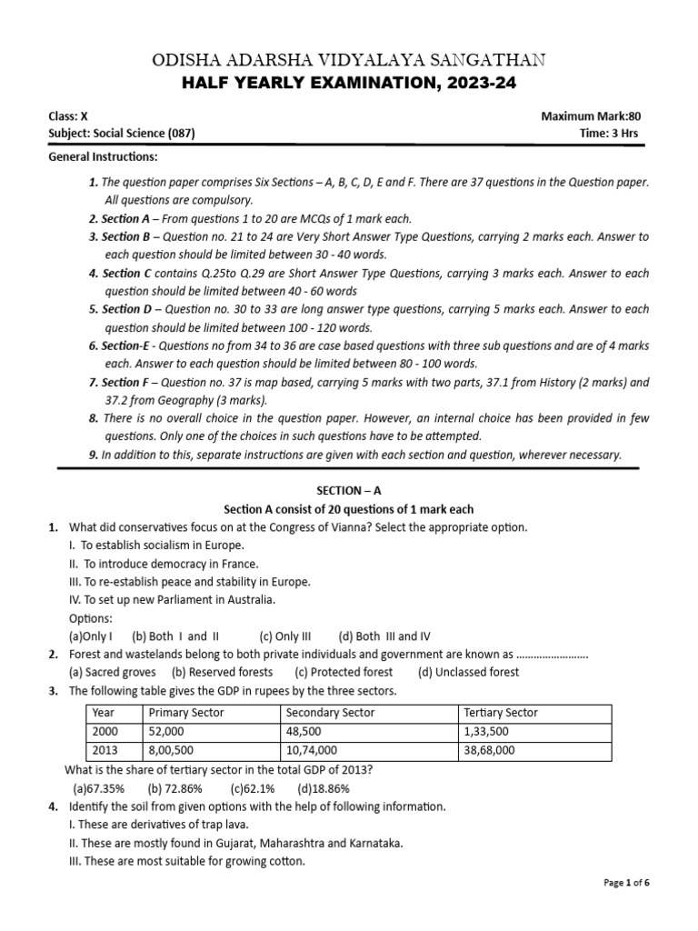 1. The question paper comprises Six Sections – A, B, C, D, E and F. There are 37 questions in the Question paper.