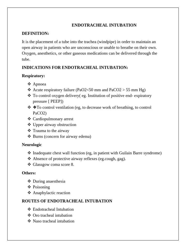ROUTES OF ENDOTRACHEAL INTUBATION