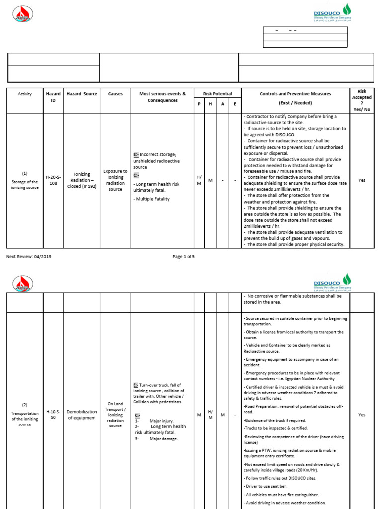 Hazard Identification & Risk Assessment Cairo-HSE-F-16.b