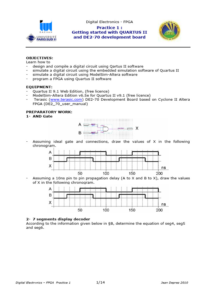 Digital Electronics – FPGA Practice 1 2/14 Jean Deprez 2010