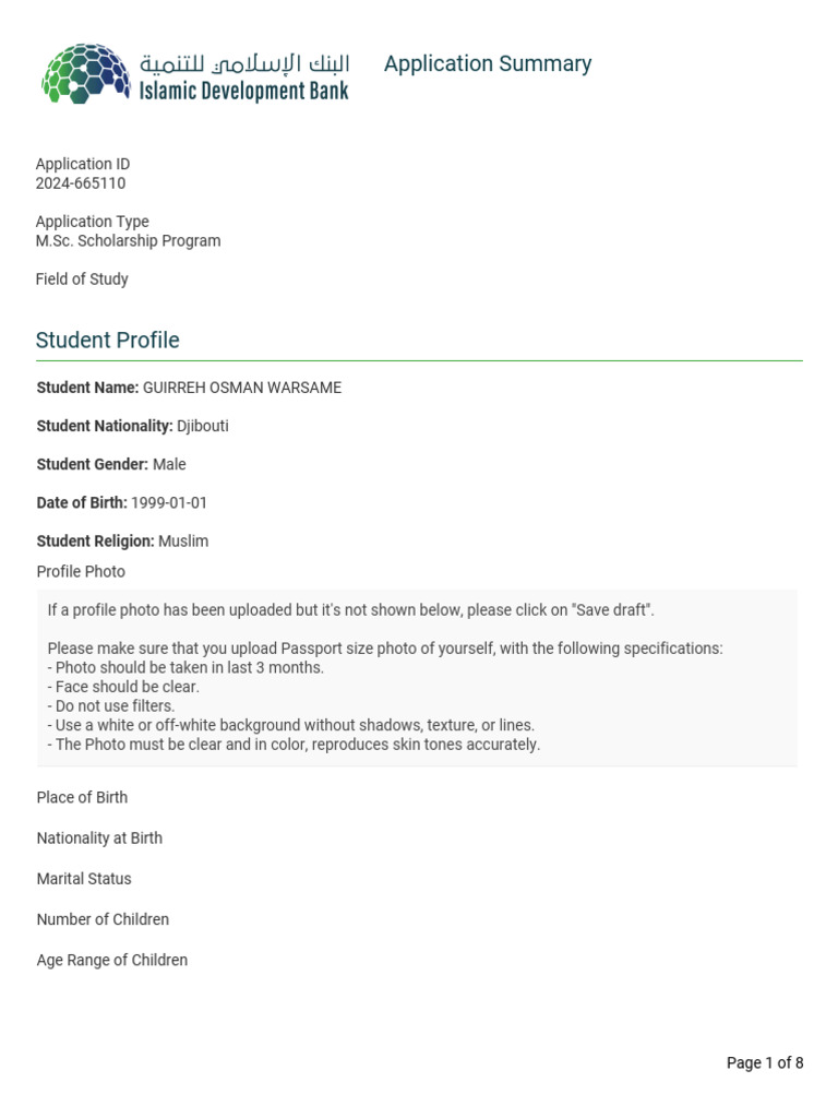 6. The final decision on my application is on competition basis and depends on the IsDB Executive