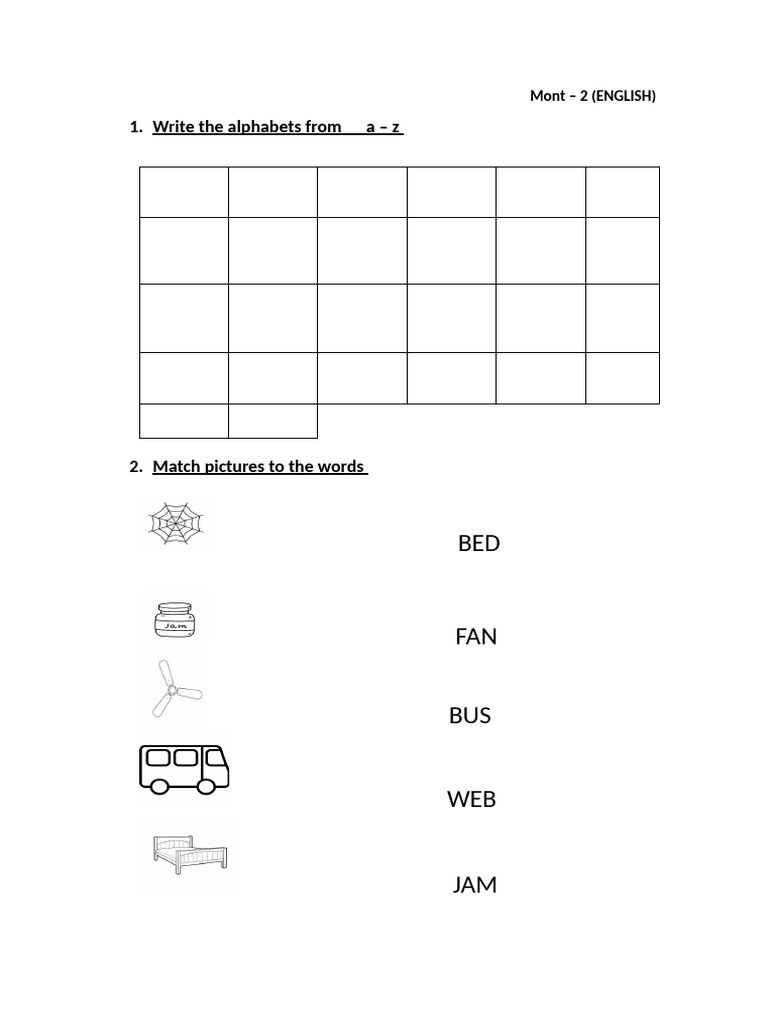 1. Write the alphabets from a–z
