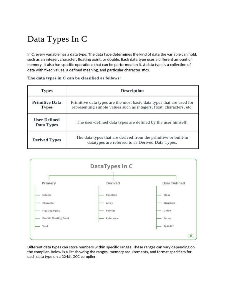 In C, every variable has a data type. The data type determines the kind of data the variable can hold,
