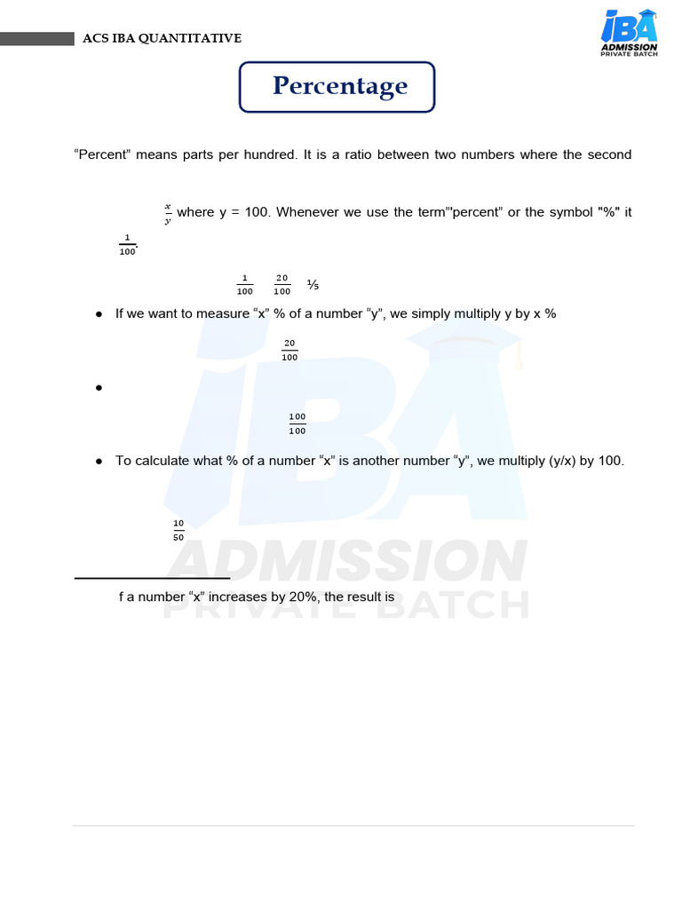 ● To calculate what % of a number “x” is another number “y”, we multiply (y/x) by 100.