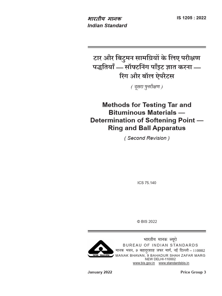 second revision of the standard, IS 1205 ‘Methods for testing tar and bituminous materials — Determination of
