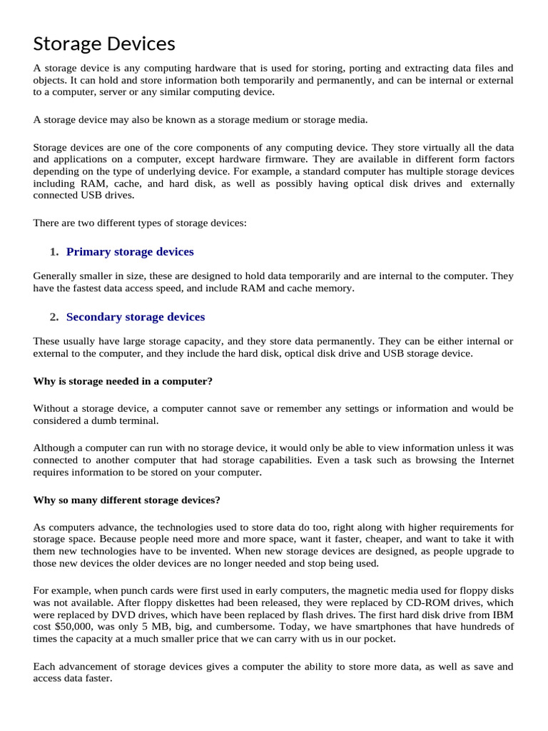 1. Primary storage devices