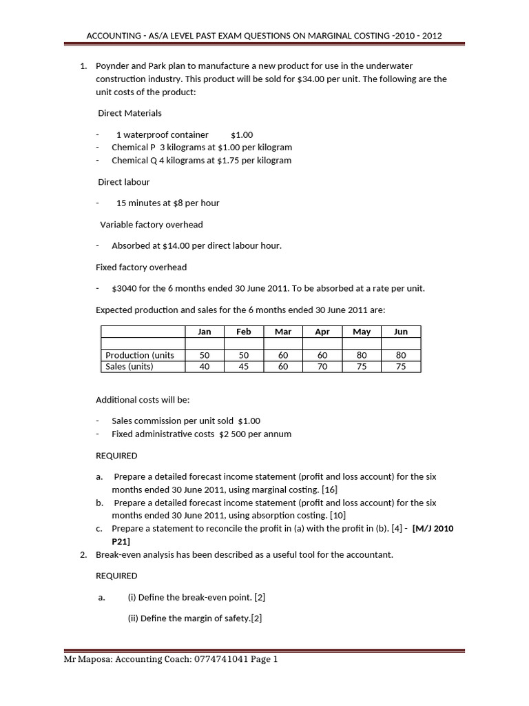 using absorption costing. [4] - [Total: 30] –[M/J 2013 P22 Q3]