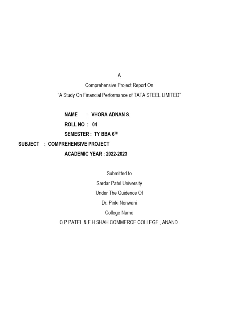 are required to make a report on “ A study on Financial Performance Of TATA STEEL LIMITED.” The