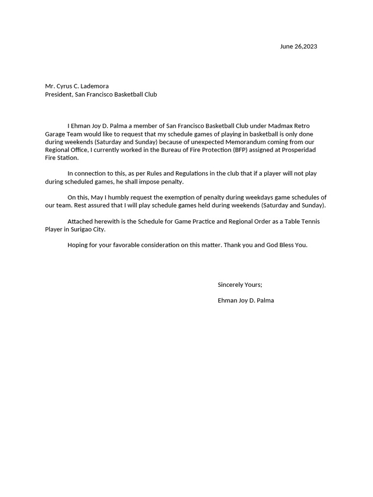 Hoping for your favorable consideration on this matter. Thank you and God Bless You.