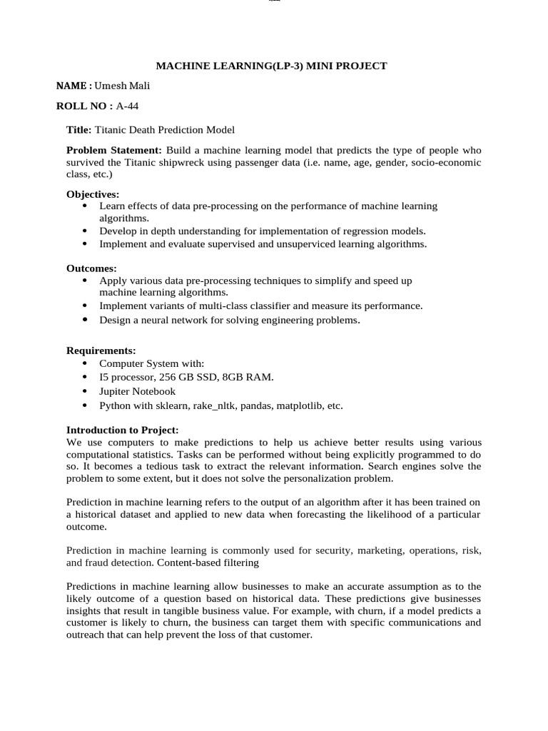 MACHINE LEARNING(LP-3) MINI PROJECT