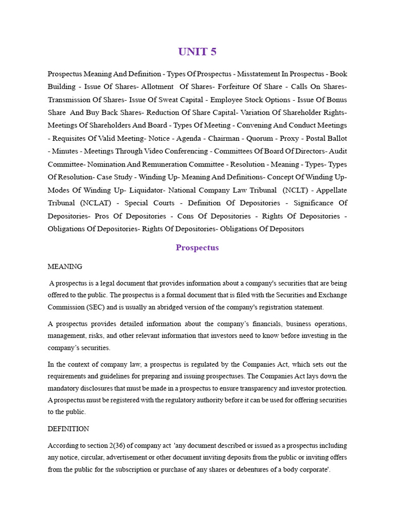 In the context of company law, a prospectus is regulated by the Companies Act, which sets out the