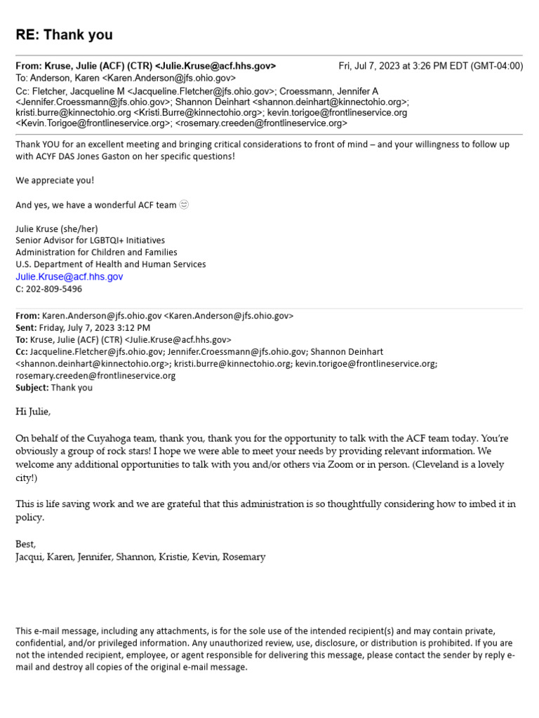 From: Kruse, Julie (ACF) (CTR) <Julie.Kruse@acf.hhs.gov> Fri, Jul 7, 2023 at 3:26 PM EDT (GMT-04:00)