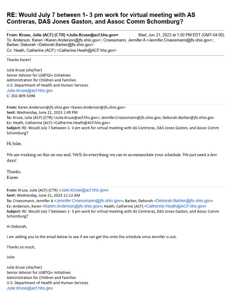 From: Kruse, Julie (ACF) (CTR) <Julie.Kruse@acf.hhs.gov> Wed, Jun 21, 2023 at 1:50 PM EDT (GMT-04:00)