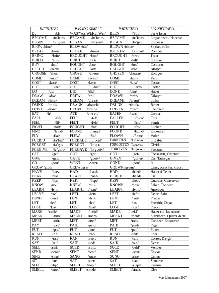 BE /bi/ WAS/Wos/WERE /Wer/ BEEN //bin/ Ser ó Estar