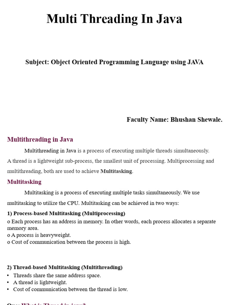 Multi Threading In Java