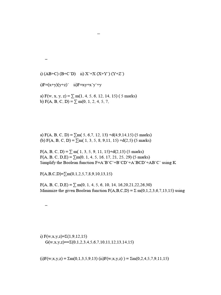 (i)F(w,x,y,z) = Σm(0,1,3,5,9,13) (ii)F(w,x,y,z) ) = Σm(0,2,4,5,7,9,11,15)