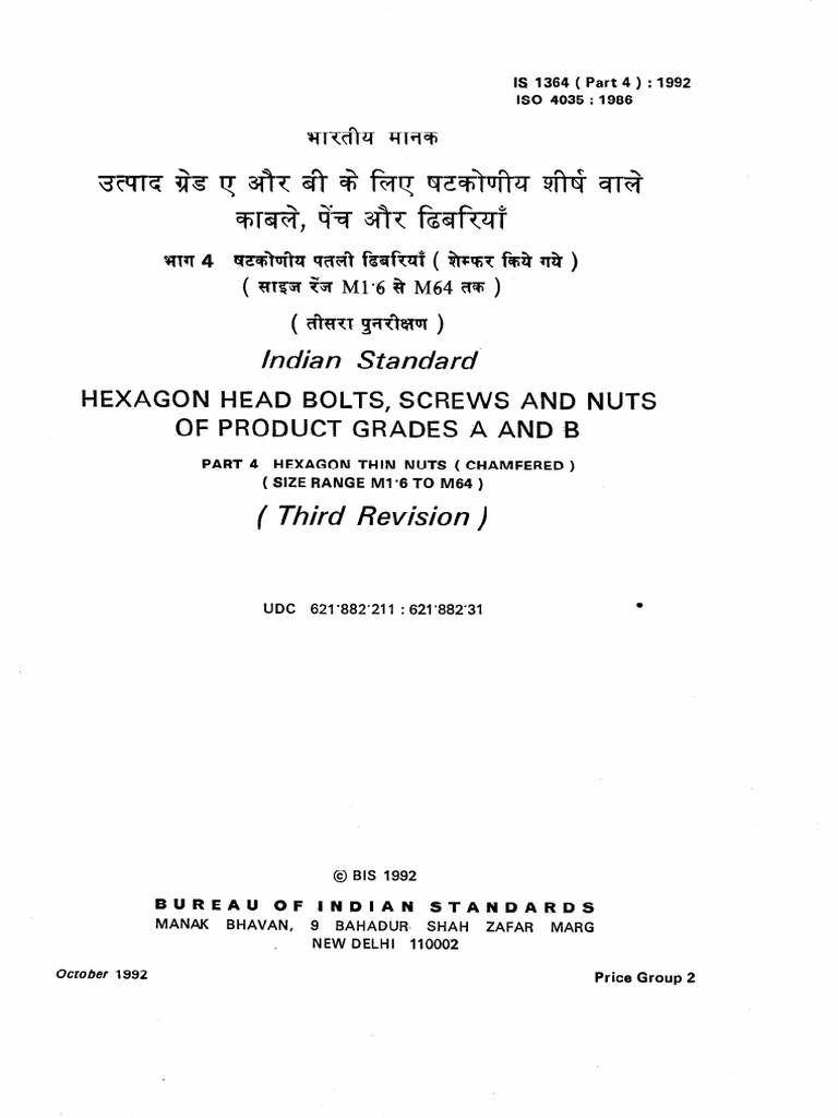 The second revision of the standard was based on IS0 4035 : 1979 ‘Hexagon thin nuts -