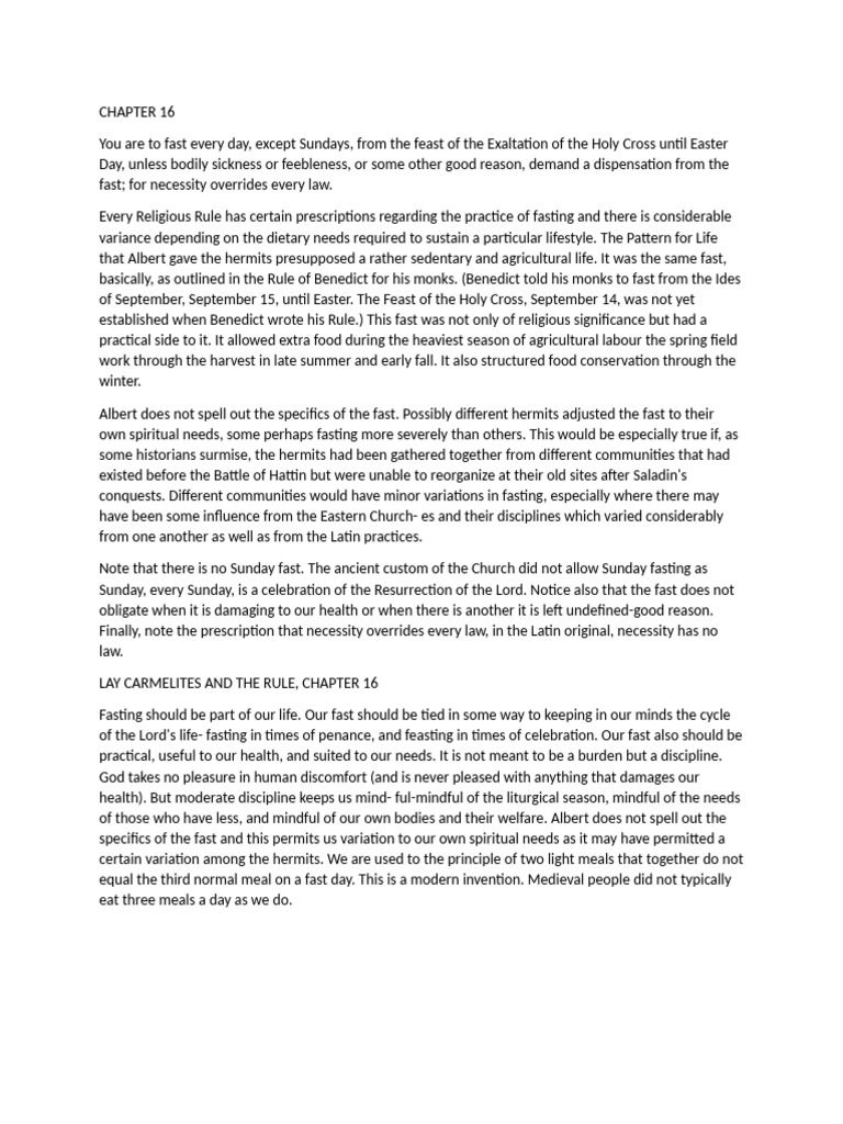 LAY CARMELITES AND THE RULE, CHAPTER 16
