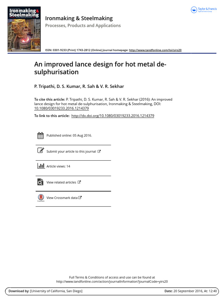 lance design for hot metal de-sulphurisation, Ironmaking & Steelmaking, DOI: