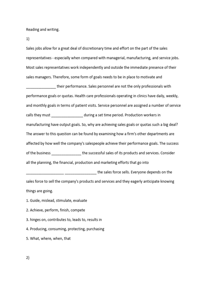 _______________ their performance. Sales personnel are not the only professionals with