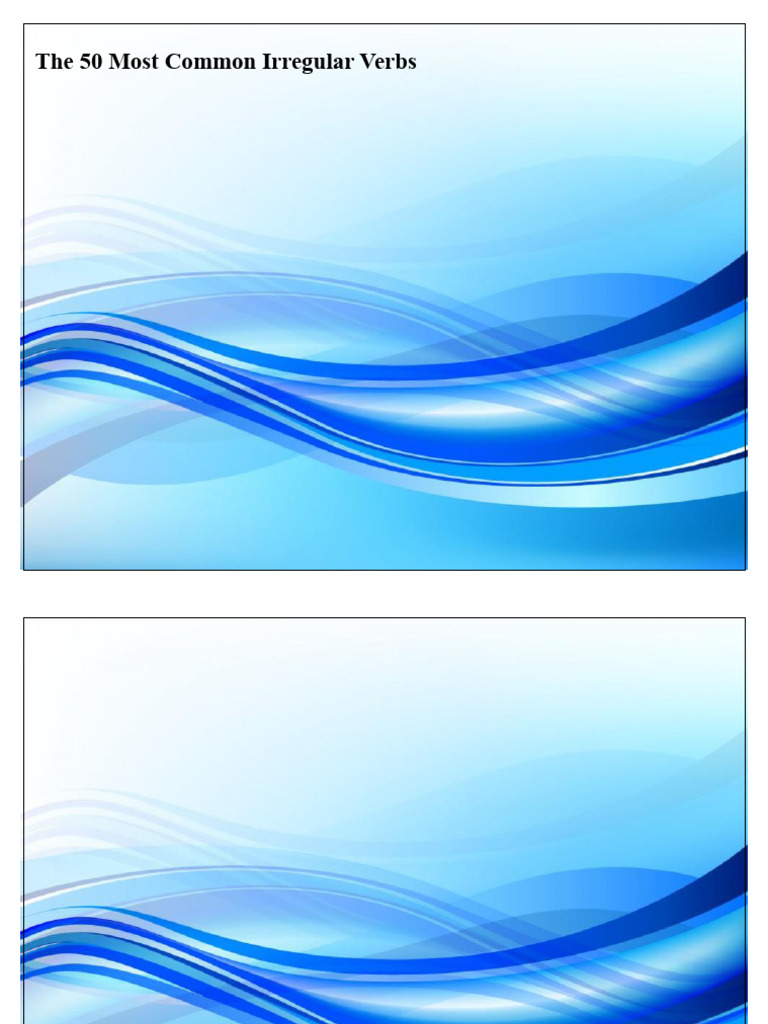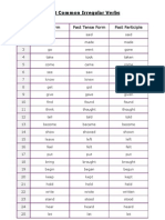 These are the 50 most common irregular verbs in the English language. This does not include the auxiliary verbs "do" (do-did-done) and "have"