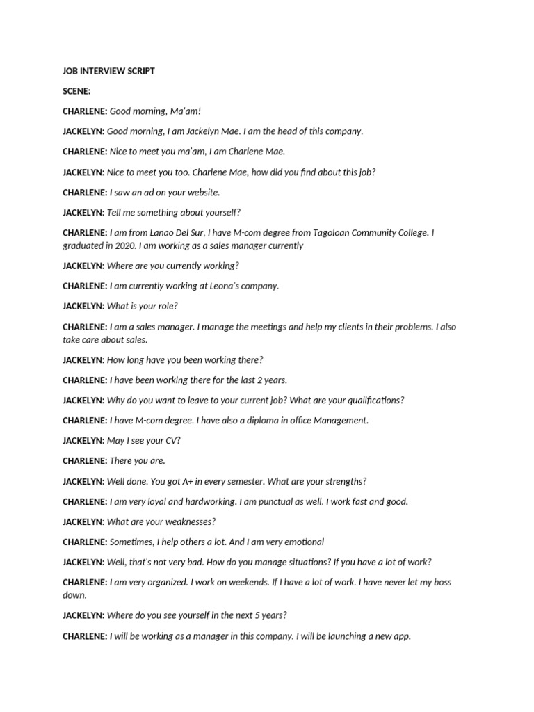 JACKELYN: Nice to meet you too. Charlene Mae, how did you find about this job?