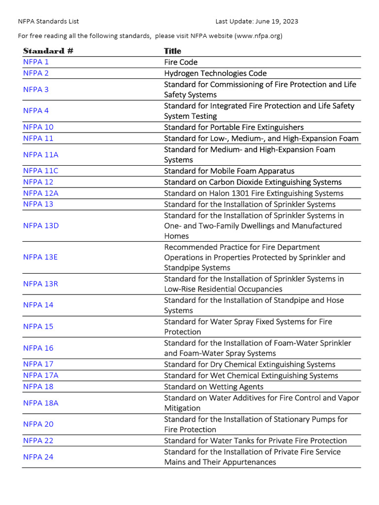 For free reading all the following standards, please visit NFPA website ([Link])