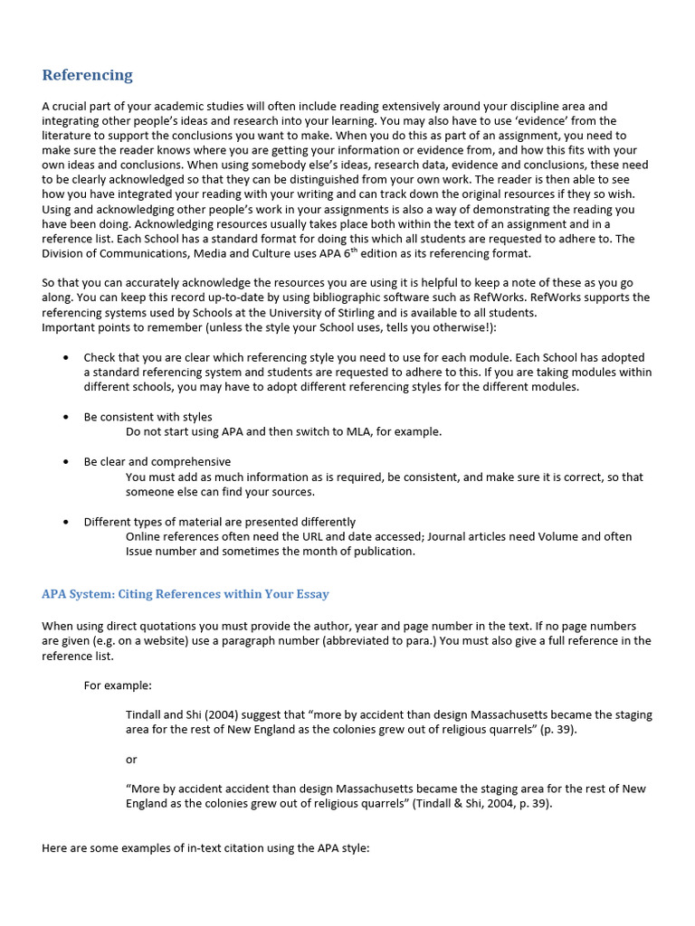 referencing systems used by Schools at the University of Stirling and is available to all students.