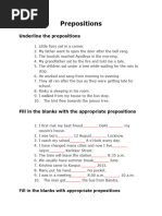 Exercise 2 with 50 sentences Fill in the Correct Preposition