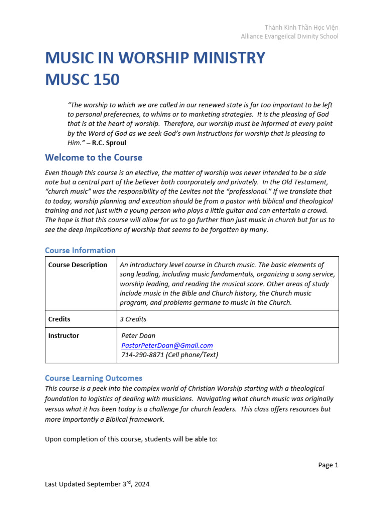 Course Description An introductory level course in Church music. The basic elements of