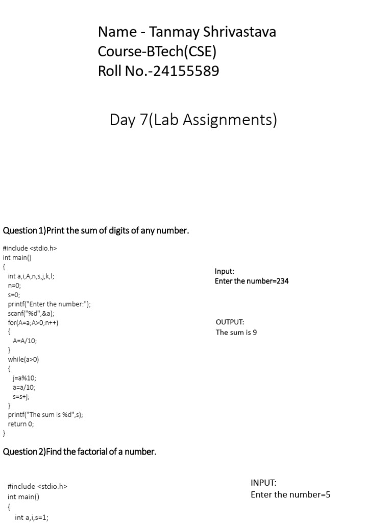 int a,i,s=1,r=0; Enter the number of terms needed:7