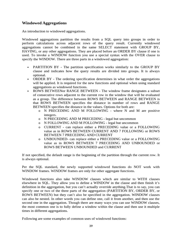 ROWS BETWEEN) but they can’t also be specified in the aggregation. WINDOW clauses